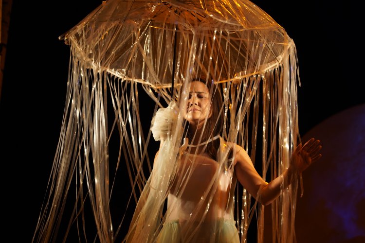 – Бұл камерлық спектакль болғандықтан, біз сыртқы пластикадан гөрі ішкі пластикаға назар аудардық. Молекулярлық элементтер сияқты сезімнен туындаған қимылдар. Қойылымда метафоралар өте көп, – деді ол.