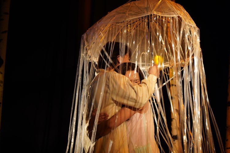 Сахнада тұман, қар, жел секілді эффектілер қолданылып, табиғаттың күйі көрініс табады. Театр ұжымы тіпті тазалықтың символы саналатын аққайыңды да сахнаға шығарып, қойылымның әсерін күшейтті.