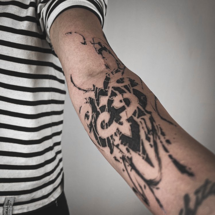 Адиль – тату-художник, работающий в стиле тюркских орнаментов и абстракции.