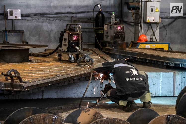 После сборки конструкций всё проверяется, окрашивается и отправляется на другое предприятие. Всего на заводе работают порядка 650 человек, а в целом на ERG Service около 6000 человек.