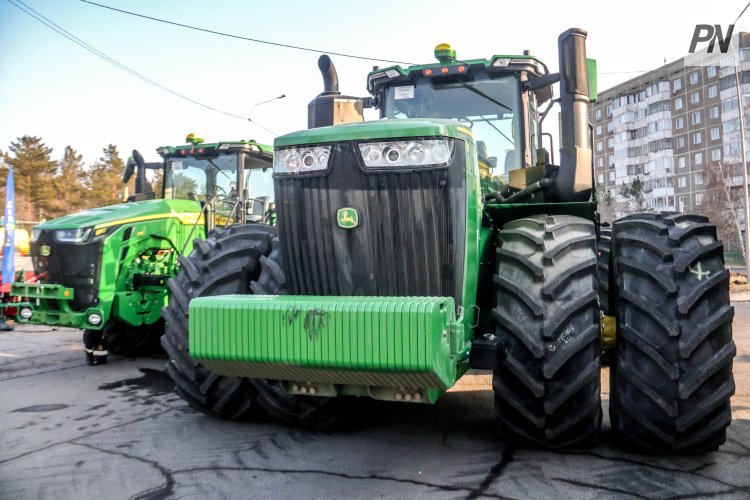 Американская техника, представленная на выставке, заметно выделялась на фоне остальных экспонатов: мощная, высокая, созданная для тяжёлых полевых работ. Отрадно, что такие машины сегодня доступны павлодарским фермерам. Особое внимание привлёк трактор 9RT 370. Его главное преимущество – он не переуплотняет почву благодаря гусеничной схеме и равномерному распределению веса.