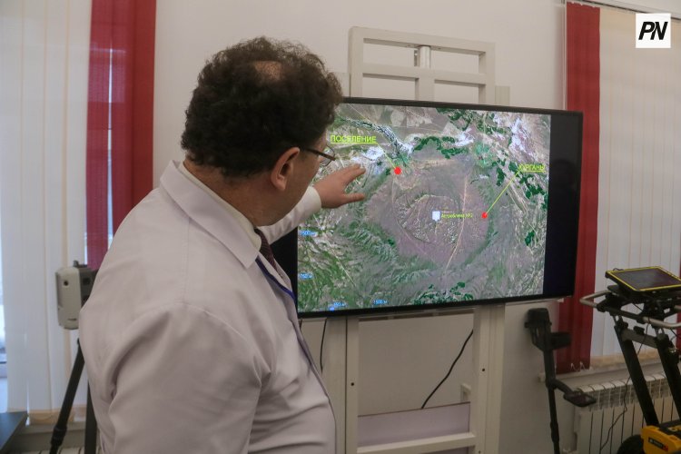 – Сейчас мы приступили к изучению одного интересного проекта, связанного с астероидами. Дело в том, что в Казахстане есть места падения астероидов, и они представляют археологический интерес, – подчеркнул руководитель Маргулан центра. – Это спутниковый снимок астероида, который упал между городами Семей и Усть-Каменогорск. Существует гипотеза, что в местах падения астероидов происходят сложные биохимические процессы, в результате которых появляются залежи полиметаллов – золота, серебра, олова и так далее. Соответственно, позднее здесь могли располагаться древние центры металлургии. Как правило, в кратерах появляются родники, которые дают травяной покров – источник питания для животных. Таким образом, астероиды и археология оказываются тесно переплетены.