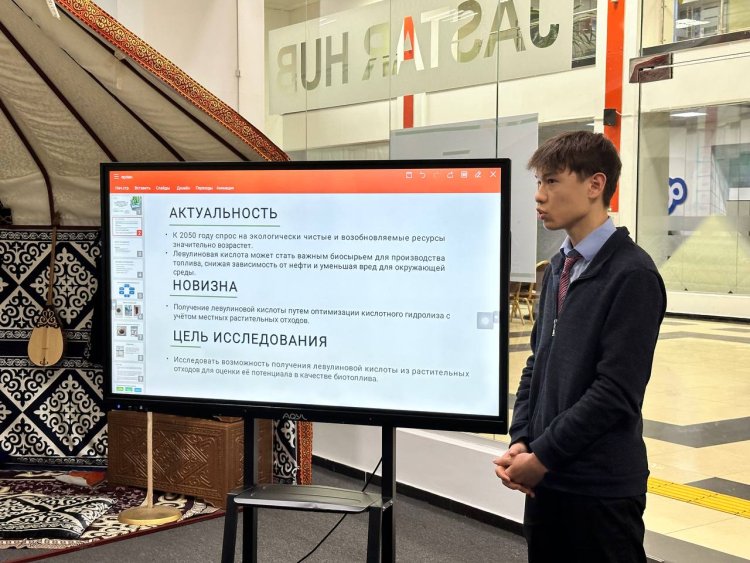 Среди представленных инициатив – проект десятиклассников Ерлана Темирбая и Адильхана Калау из Назарбаев интеллектуальной школы города. Ребята презентовали идею использования растительных отходов для создания биотоплива на основе ливериновой кислоты.