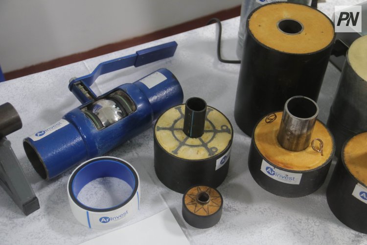 Предпринимательницы развернули выставку сельскохозяйственной и промышленной продукции, включая рубероид и трубы для теплотрасс с надземной и подземной изоляцией для южных и северных регионов Казахстана, показывая, чем богаты и что можно предложить на экспорт в другие регионы.