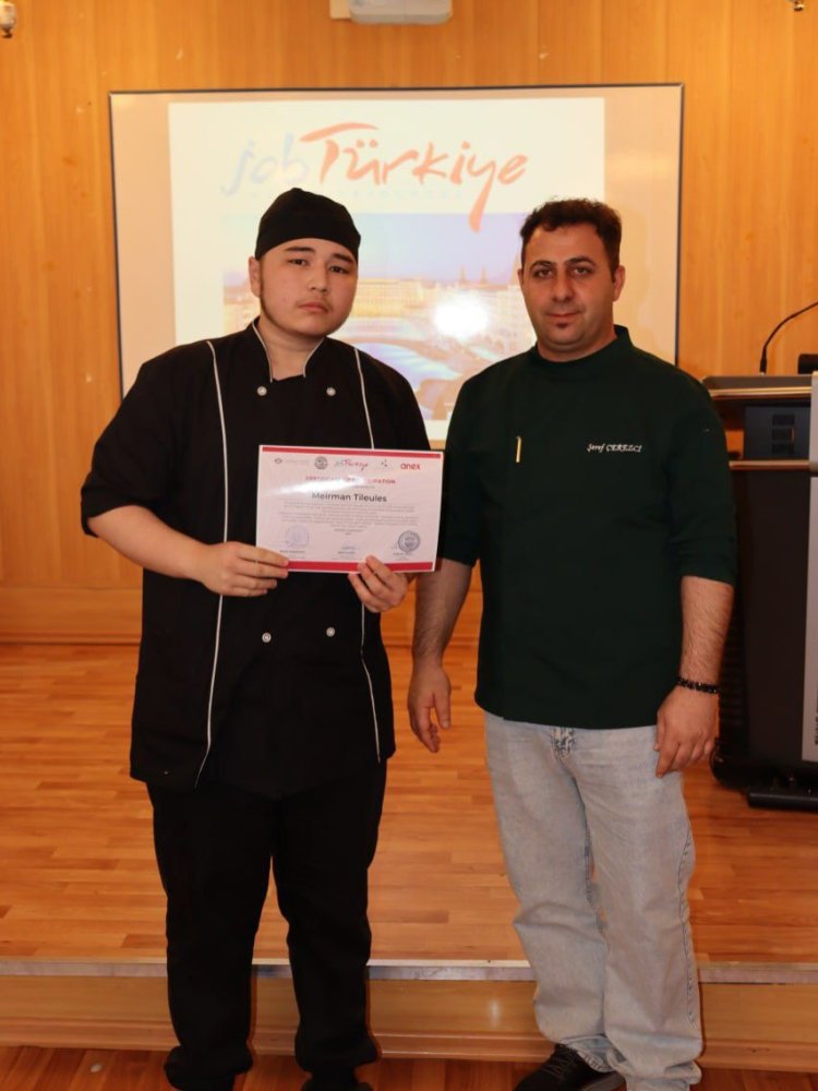 Студент третьего курса специальности «Подготовка и организация общественного питания» Мейрман Тлеулес успешно завершил профессиональную стажировку в престижном пятизвездочном отеле Selectum Noa Belek в Турции, известном высоким уровнем сервиса.