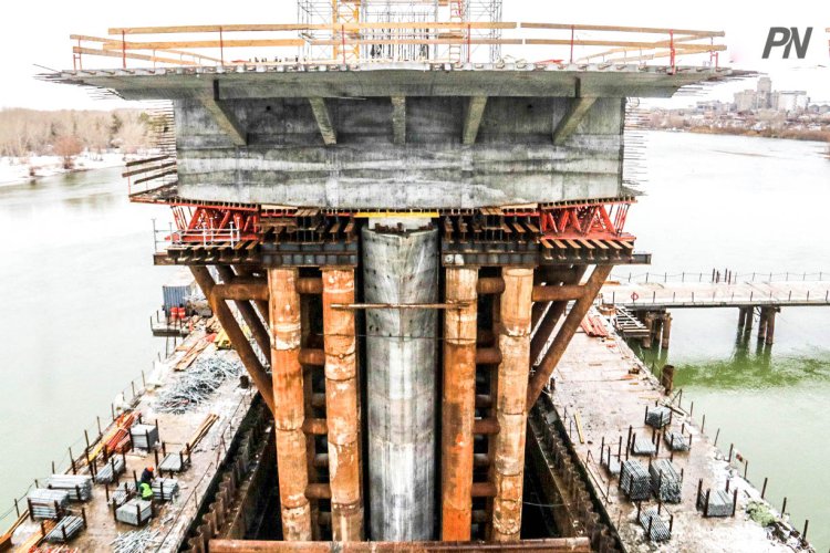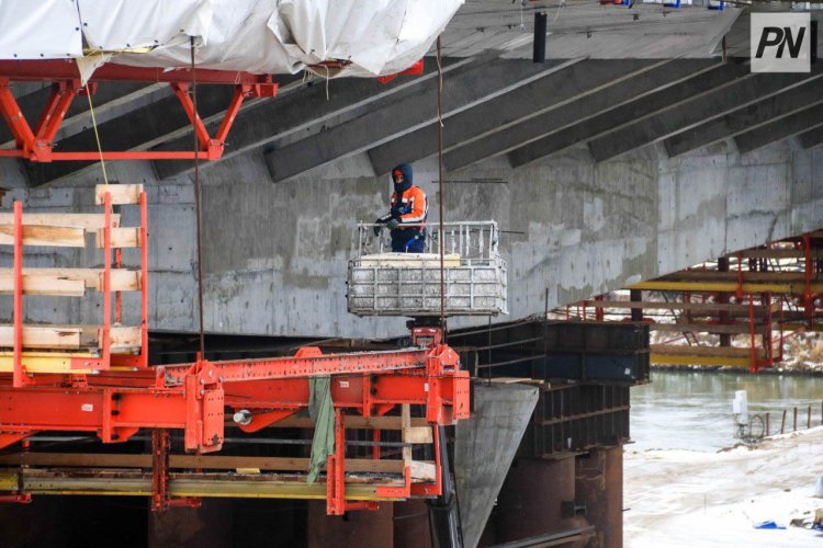– Уже выполнено 52 процента от общего объёма работ, – заявил Алексей Логвиненко. – Часть из них – на уровне «ниже нуля», который не виден глазу. Уже сейчас установлены стартовые блоки на опорах 3, 4, 5. По пролётному строению будет двигаться транспорт.