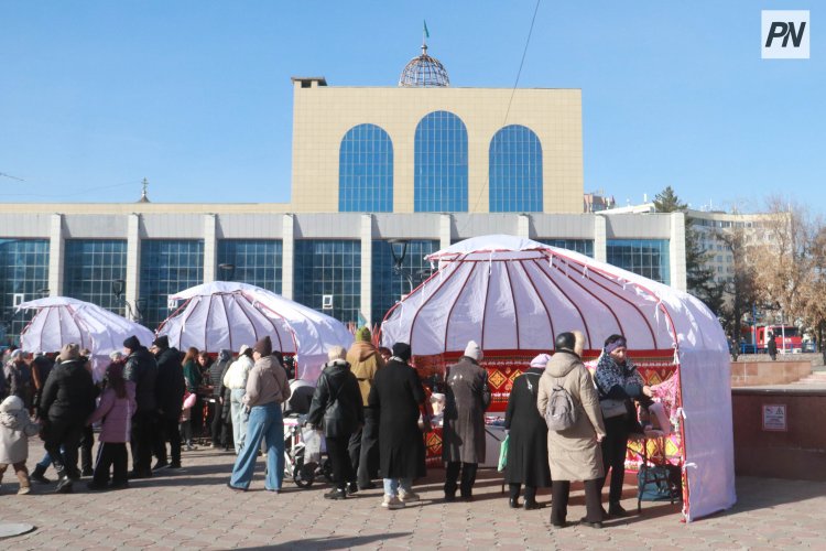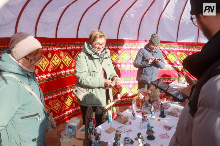После официальной части горожане направилась ко Дворцу культуры им. Естая, где продолжилось праздничное действо. Здесь развернулись яркая концертная программа и тематическая ярмарка. Традиционных рукодельниц разместили в оригинальных лавках, стилизованных под юрты, где гости могли познакомиться с изделиями народного творчества.